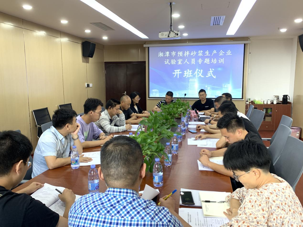 為進一步提高預(yù)拌砂漿生產(chǎn)企業(yè)試驗室檢驗工作質(zhì)量和試驗室工作人員檢驗水平,9月4日,由湘潭市墻體材料和散裝水泥服務(wù)中心主辦、湖南省泰德檢測認證有限公司(省建材質(zhì)檢站)承辦的湘潭市預(yù)拌砂漿生產(chǎn)企業(yè)試驗室人員專題培訓班順利開班。湘潭市墻散中心主任付春庚、副主任趙朝暉、省建材質(zhì)檢站總工黃忠衛(wèi)、站長助理張嚴之出席會議。會議由趙朝暉副主任主持,湘潭市砂漿企業(yè)試驗室人員等參加培訓。
