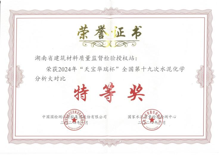 近日,由國家水泥質量檢驗檢測中心主辦的“天寶華瑞杯”全國第十九次水泥化學分析大對比總結表彰暨技術研討會在廣西南寧召開,湖南省建筑材料質量監(jiān)督檢驗授權站(以下簡稱“省建材質檢站”)斬獲特等獎,易建軍獲得化學分析“操作能手”榮譽稱號,再創(chuàng)佳績。