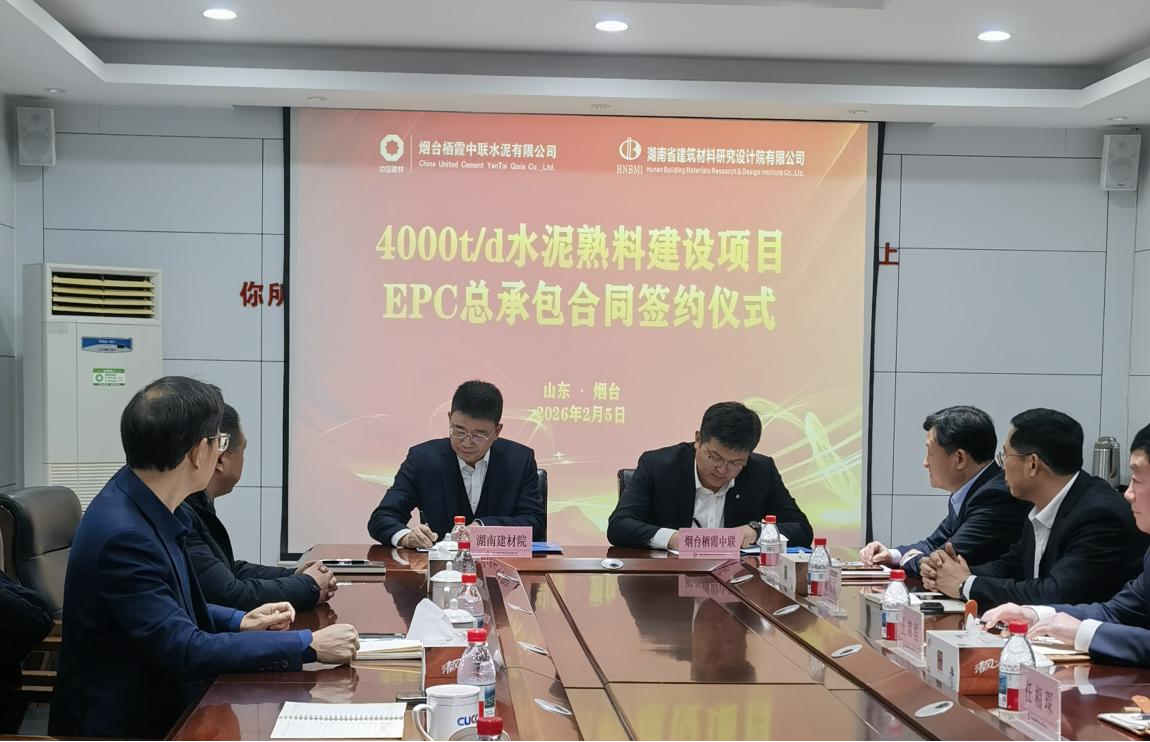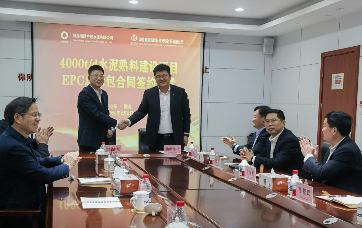 2026年2月5日,湖南省建筑材料研究設計院有限公司HNBMI董事長晉欣然攜副總經(jīng)理兼總工程師吳春宏一行,赴山東煙臺與煙臺棲霞中聯(lián)水泥有限公司黨支部書記、副總經(jīng)理(主持工作)任相琛等相關負責人齊聚一堂,共同出席煙臺棲霞中聯(lián)水泥有限公司4000t/d水泥熟料建設項目EPC總承包合同簽約儀式,雙方正式完成合同簽署。此次簽約不僅為雙方新春伊始的深度合作奠定了堅實基礎,更為HNBMI沖刺2026年業(yè)務“首季開門紅”注入了強勁發(fā)展動能。